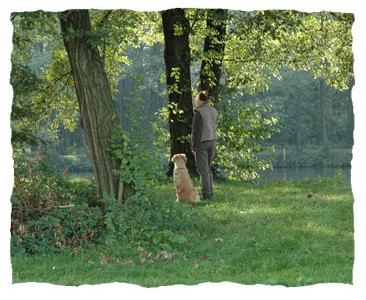 HF steht mit seinem Hund wieder am Ufer, diesmal auf der anderen
